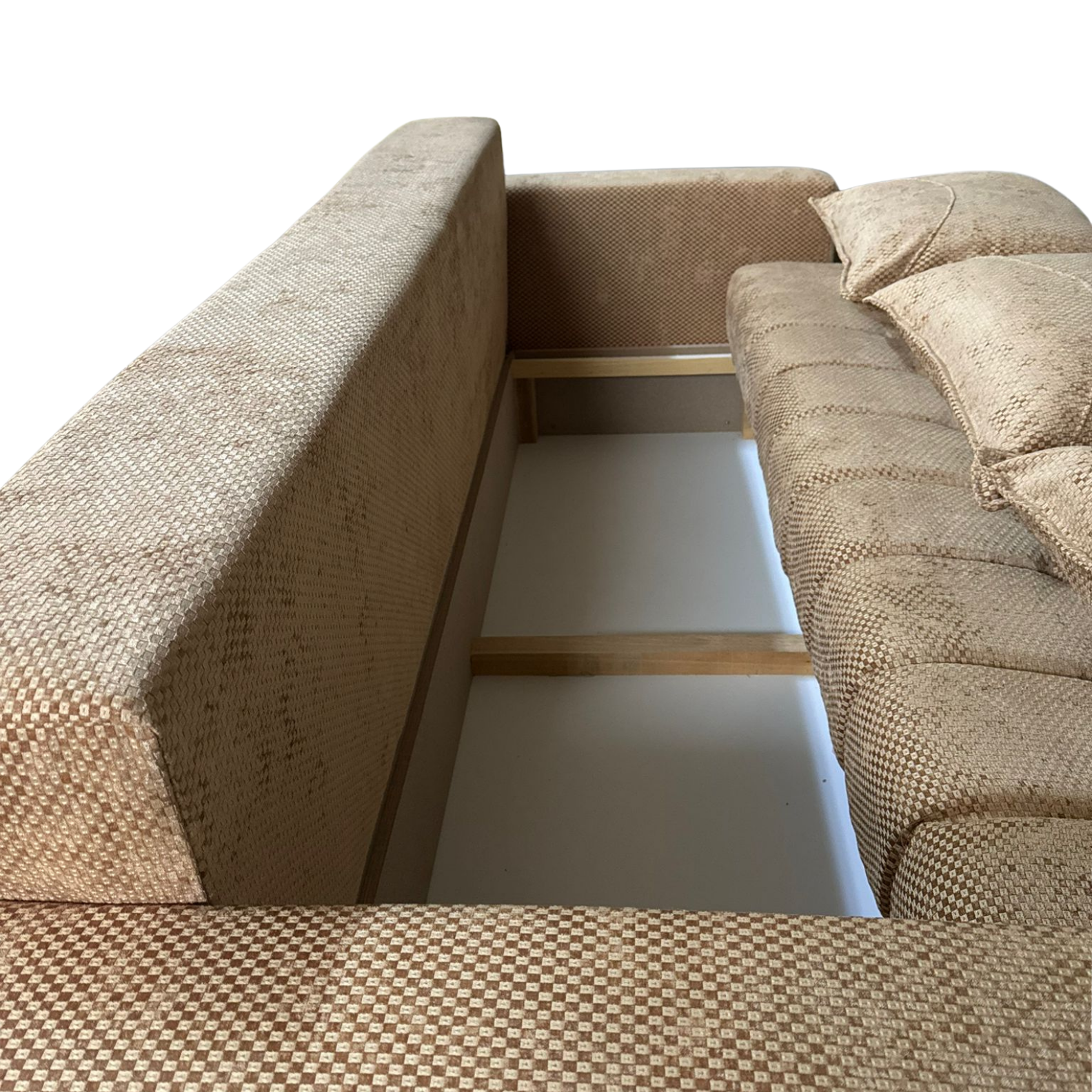 Sub șezut se ascunde o ladă de depozitare practică, ideală pentru lenjerie, perne sau orice vrei să păstrezi aproape.