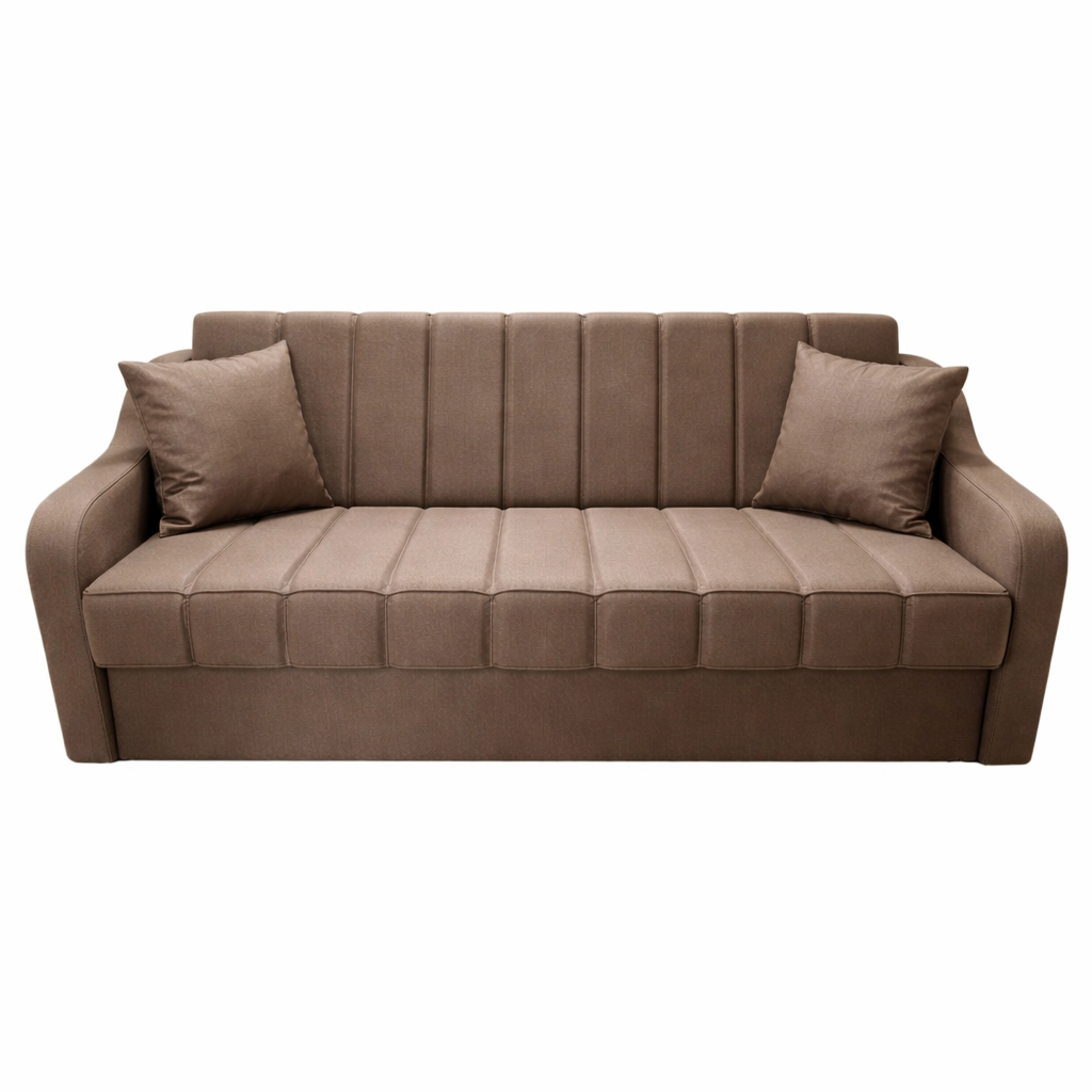 Canapea ALEX extensibila, 3 locuri, cu lada de depozitare, stofa maro, 220x90x90