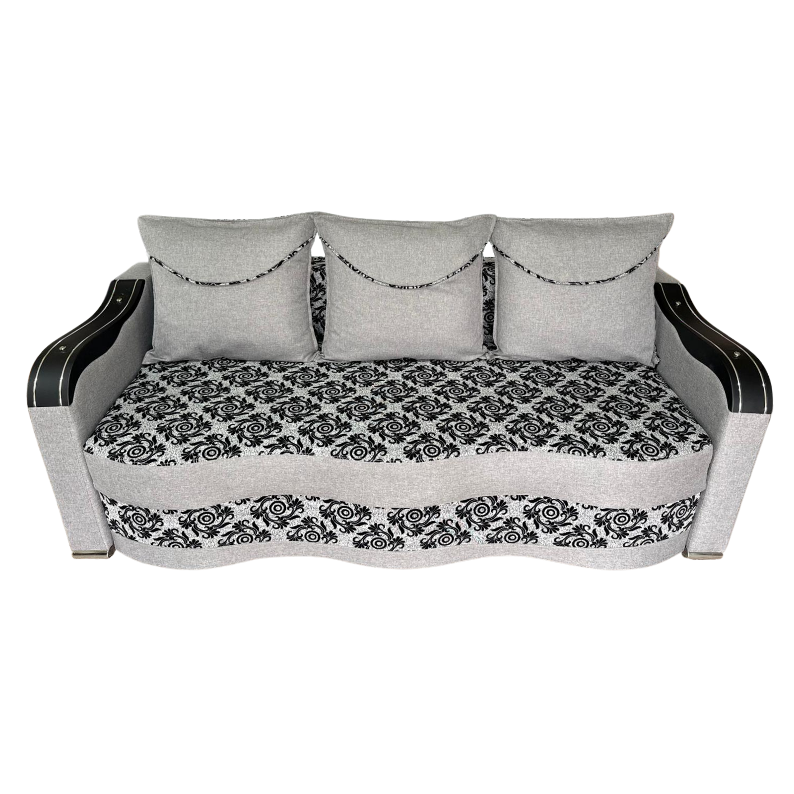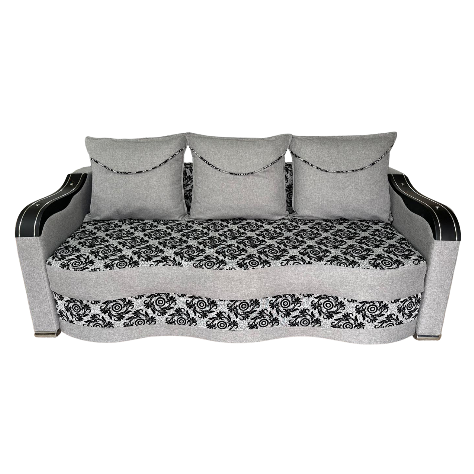 Canapea DIANA extensibila, 3 locuri, cu lada de depozitare, stofa gri cu negru , 220x100x80