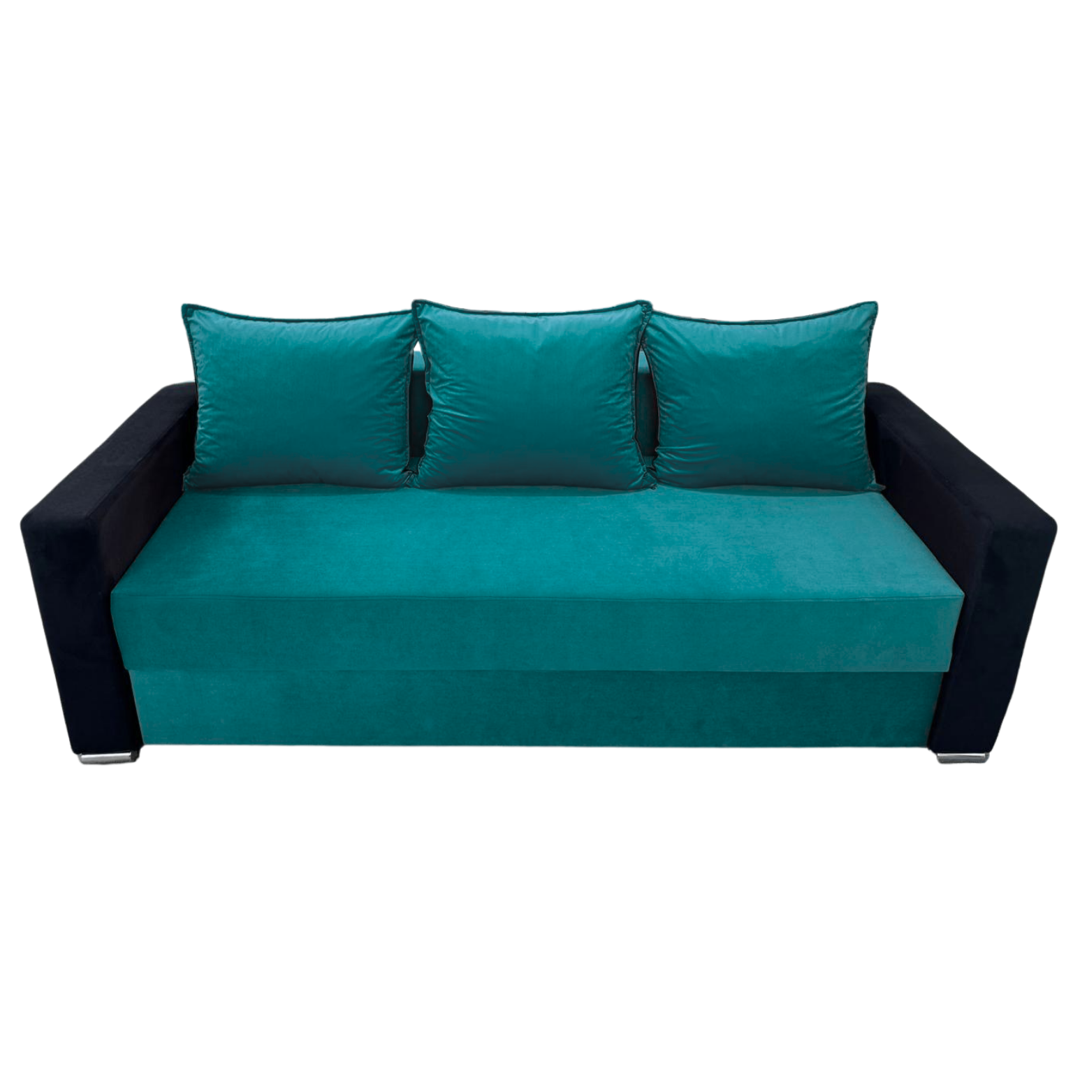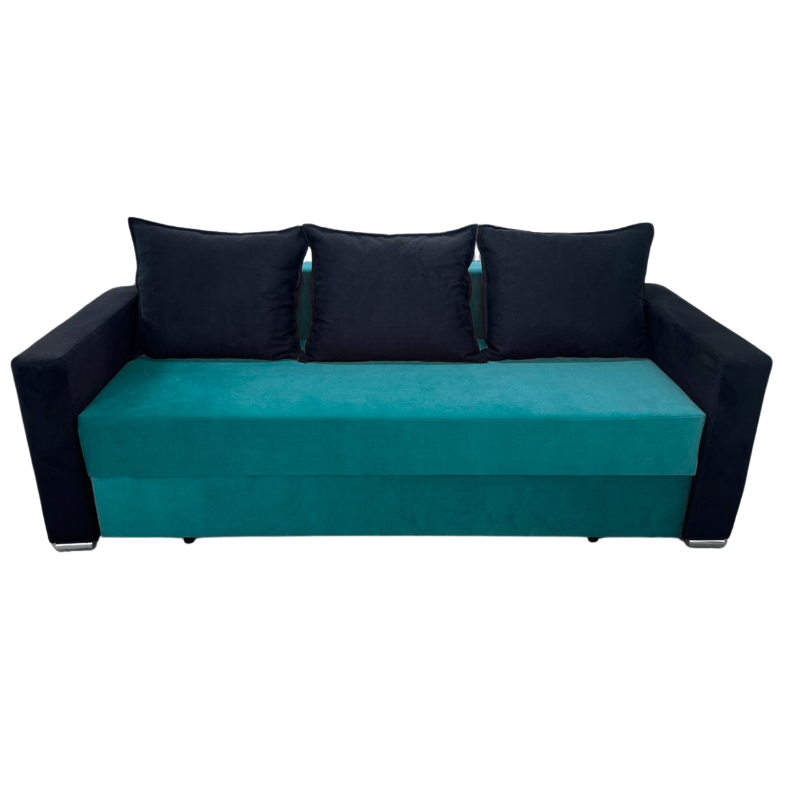 Canapea ELIZA extensibila, 3 locuri, lada de depozitare, catifea turcoaz + negru , 220x95x80