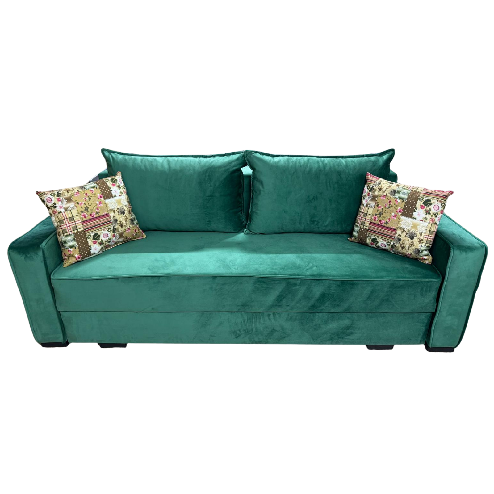 Canapea LARISA extensibila, 3 locuri, cu lada de depozitare, catifea verde smarald , 220x95x85