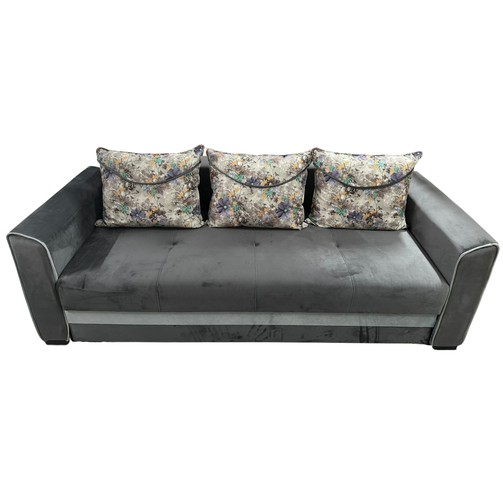 Canapea LILI extensibila, 3 locuri, cu lada de depozitare, catifea gri , 220x95x80