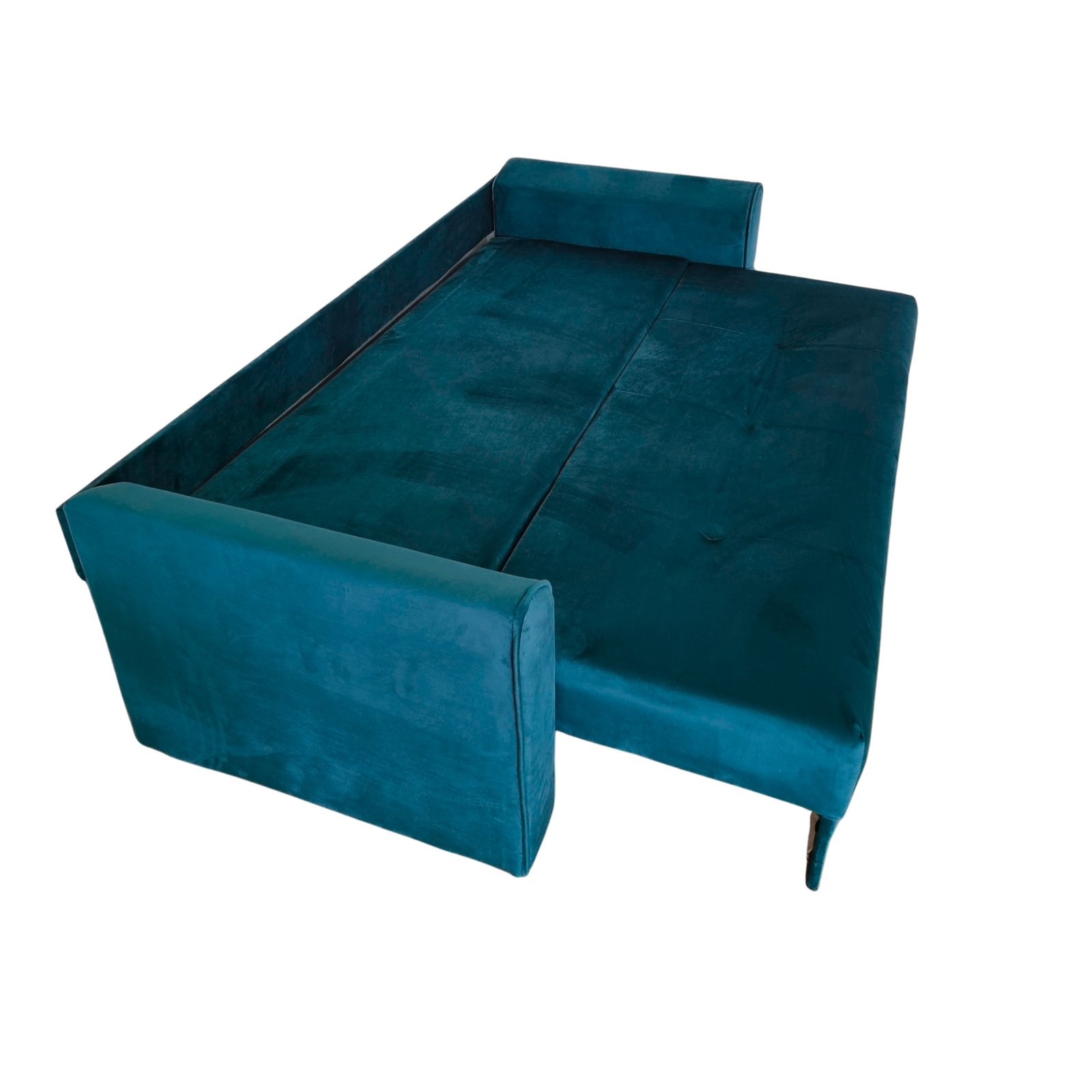 Canapea LILI extensibila, 3 locuri, cu lada de depozitare, catifea turcoaz , 220x95x80