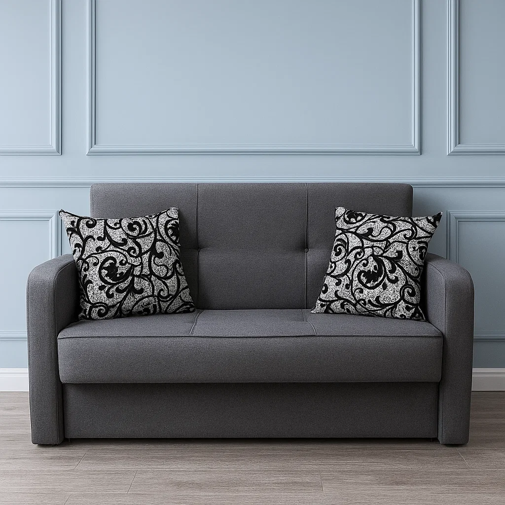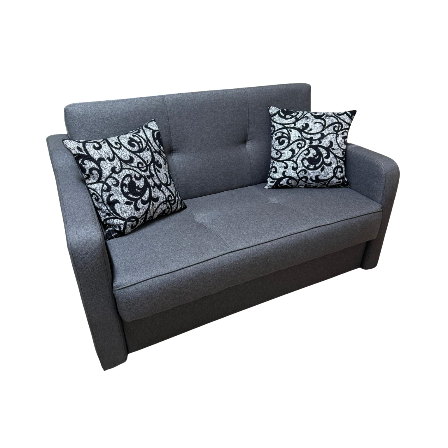 Canapea SAMY extensibila, 2 locuri, cu lada de depozitare, stofa gri, 152x100x92