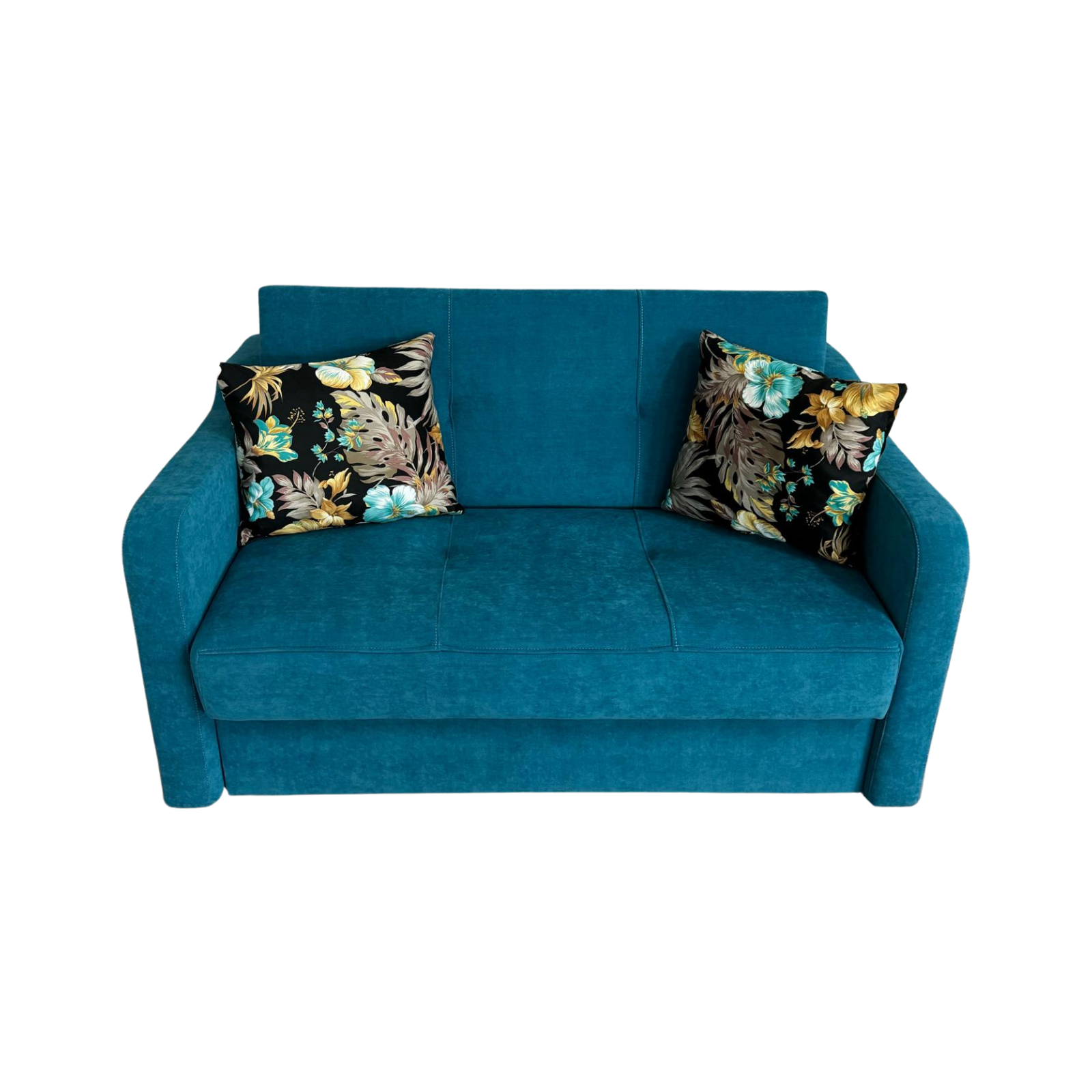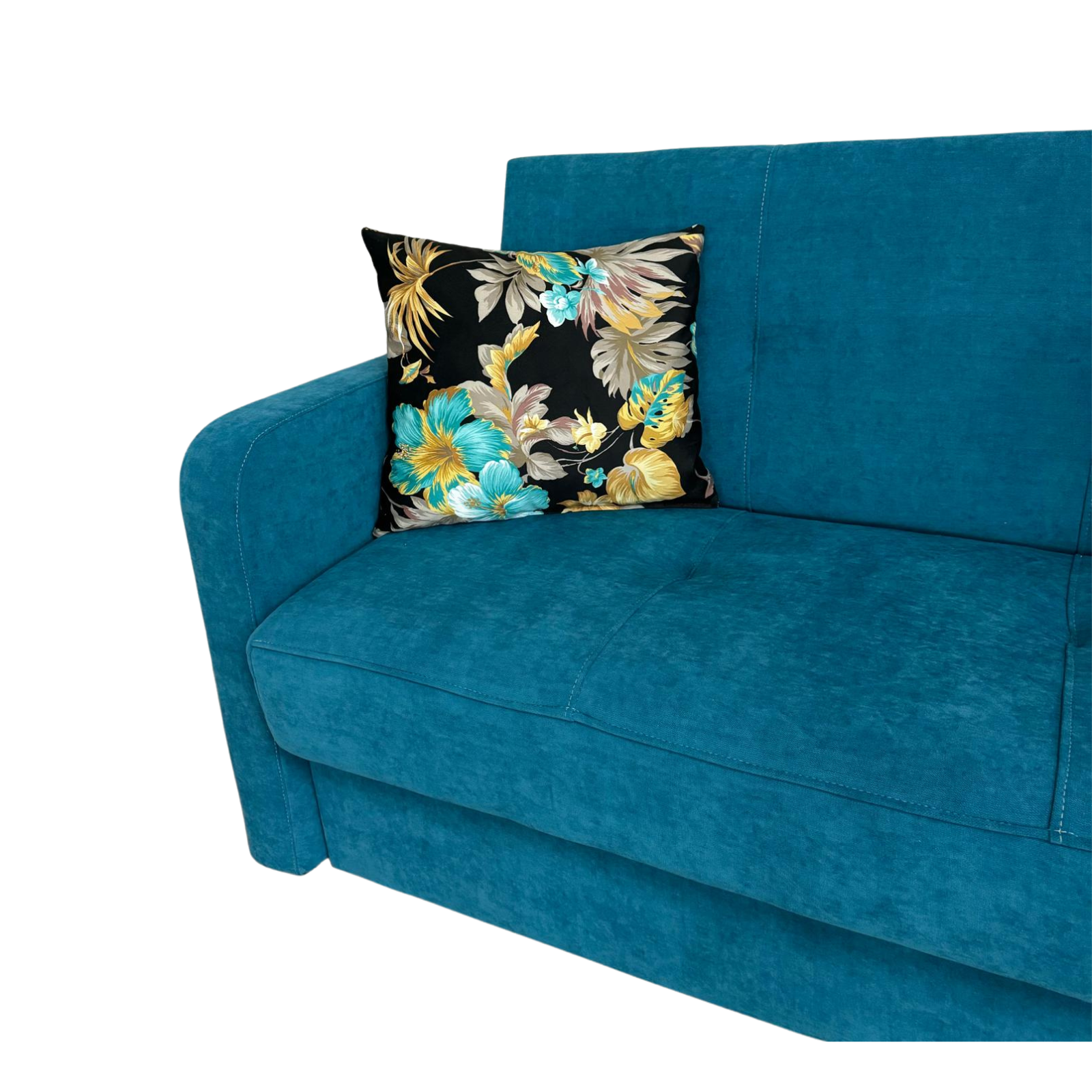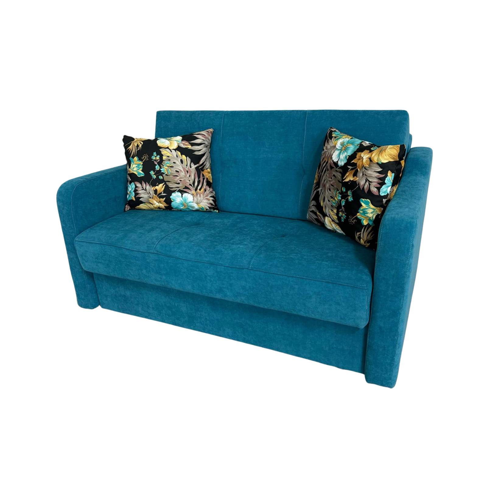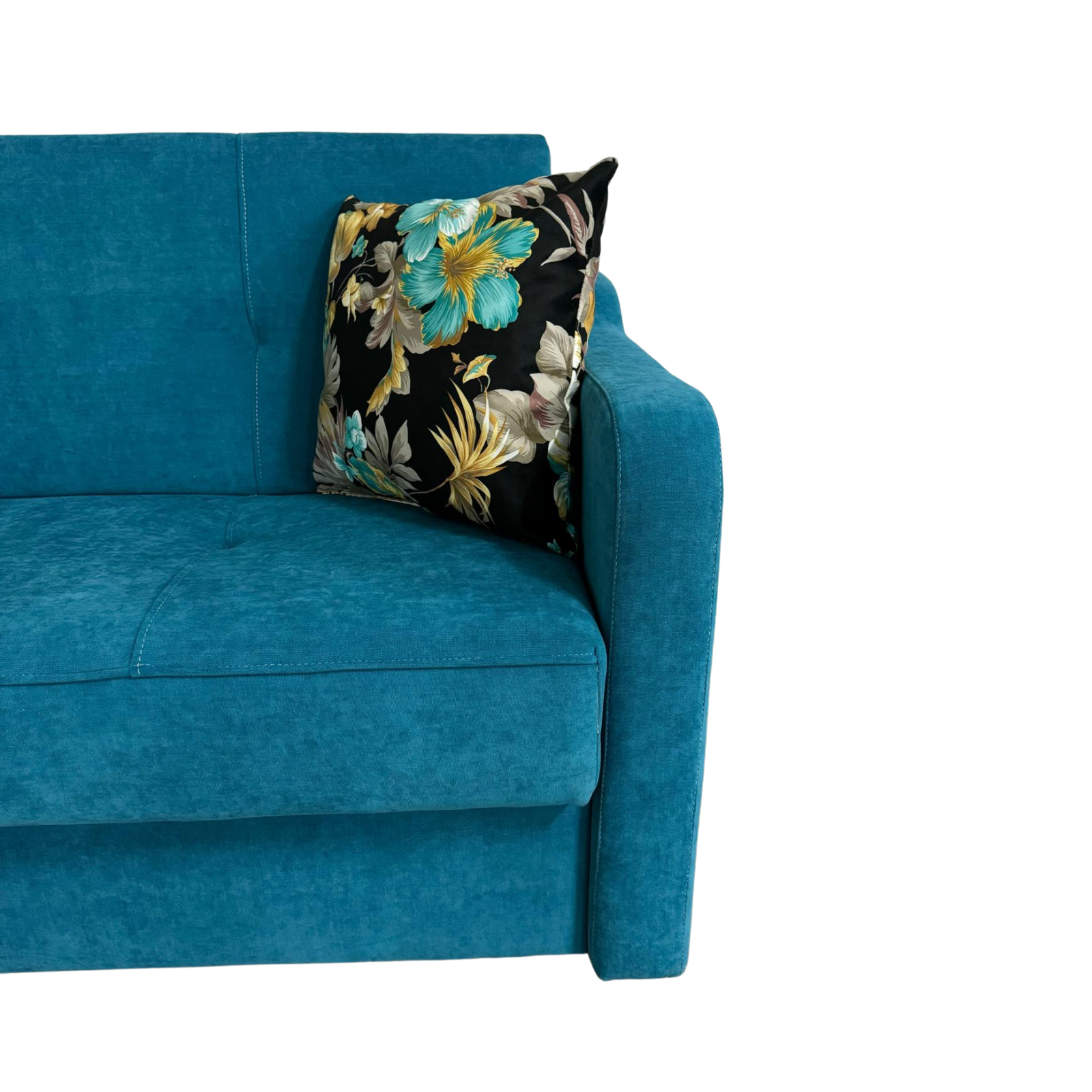 Canapea SAMY extensibila, 2 locuri, cu lada de depozitare, stofa albastru, 152x100x92