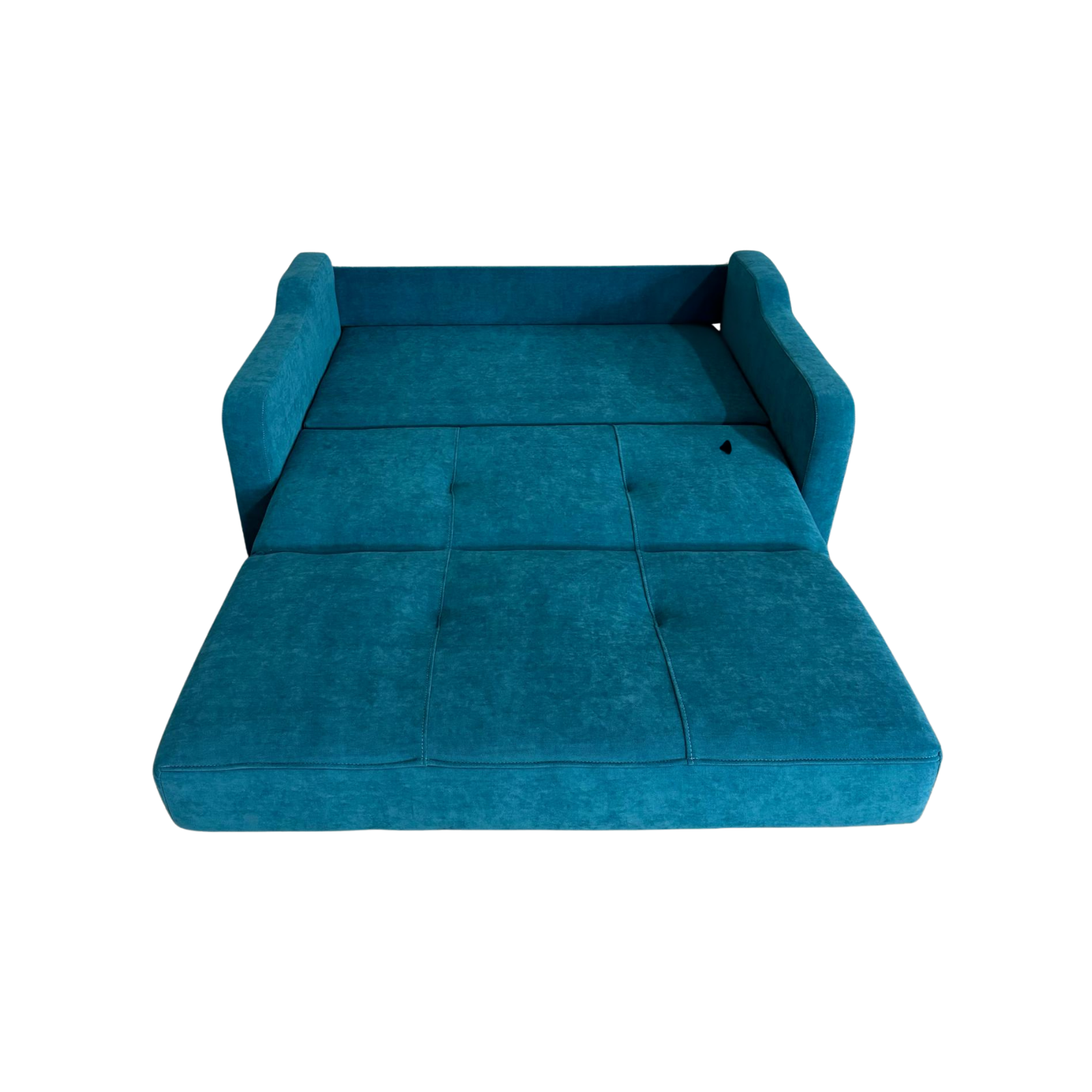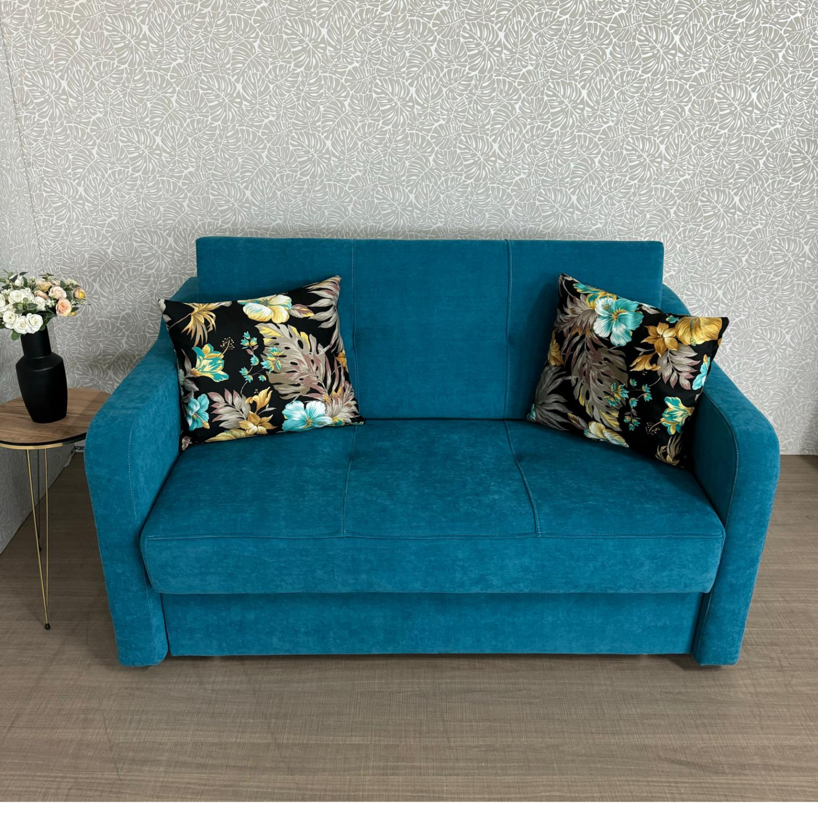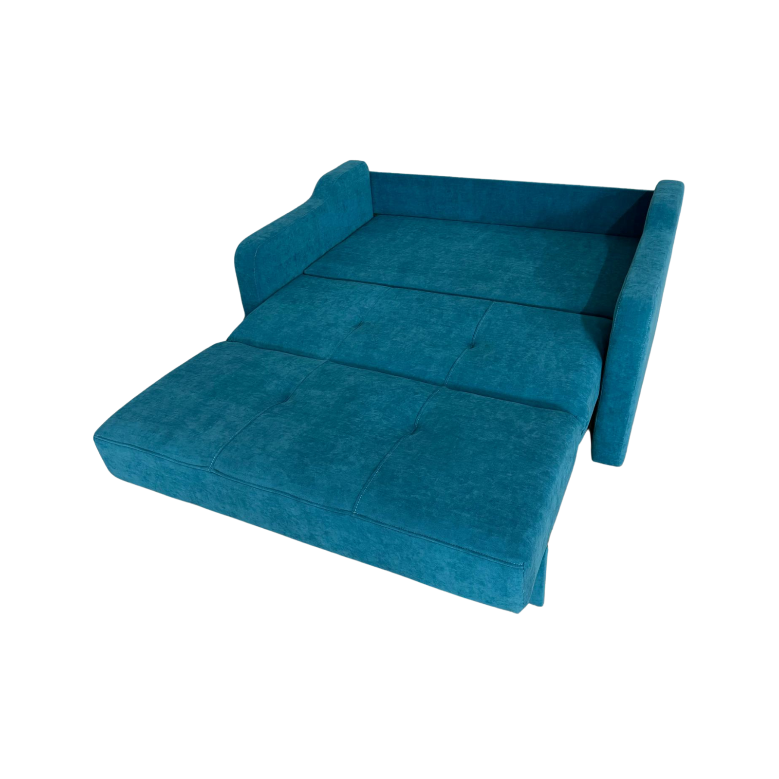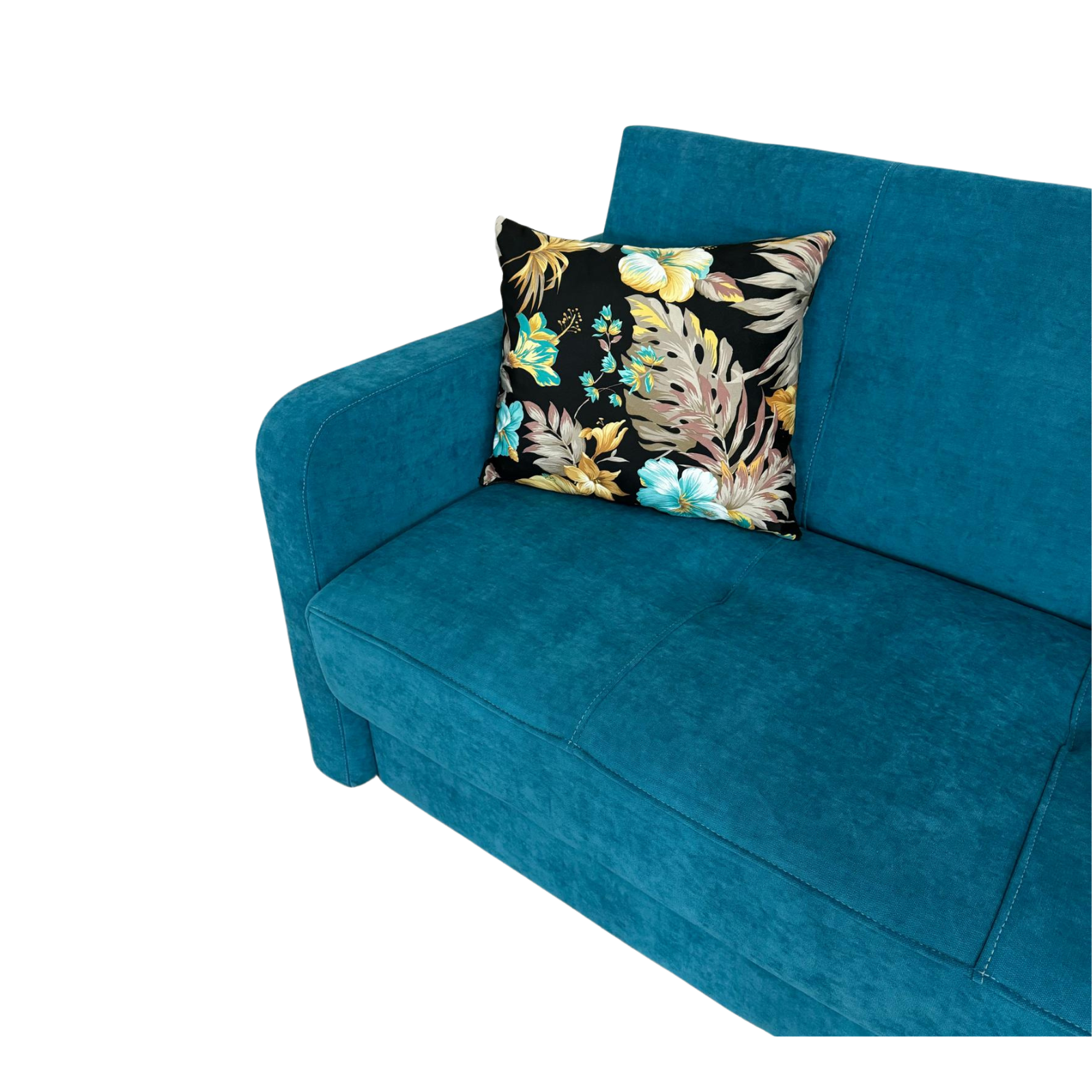 Canapea SAMY extensibila, 2 locuri, cu lada de depozitare, stofa albastru, 152x100x92