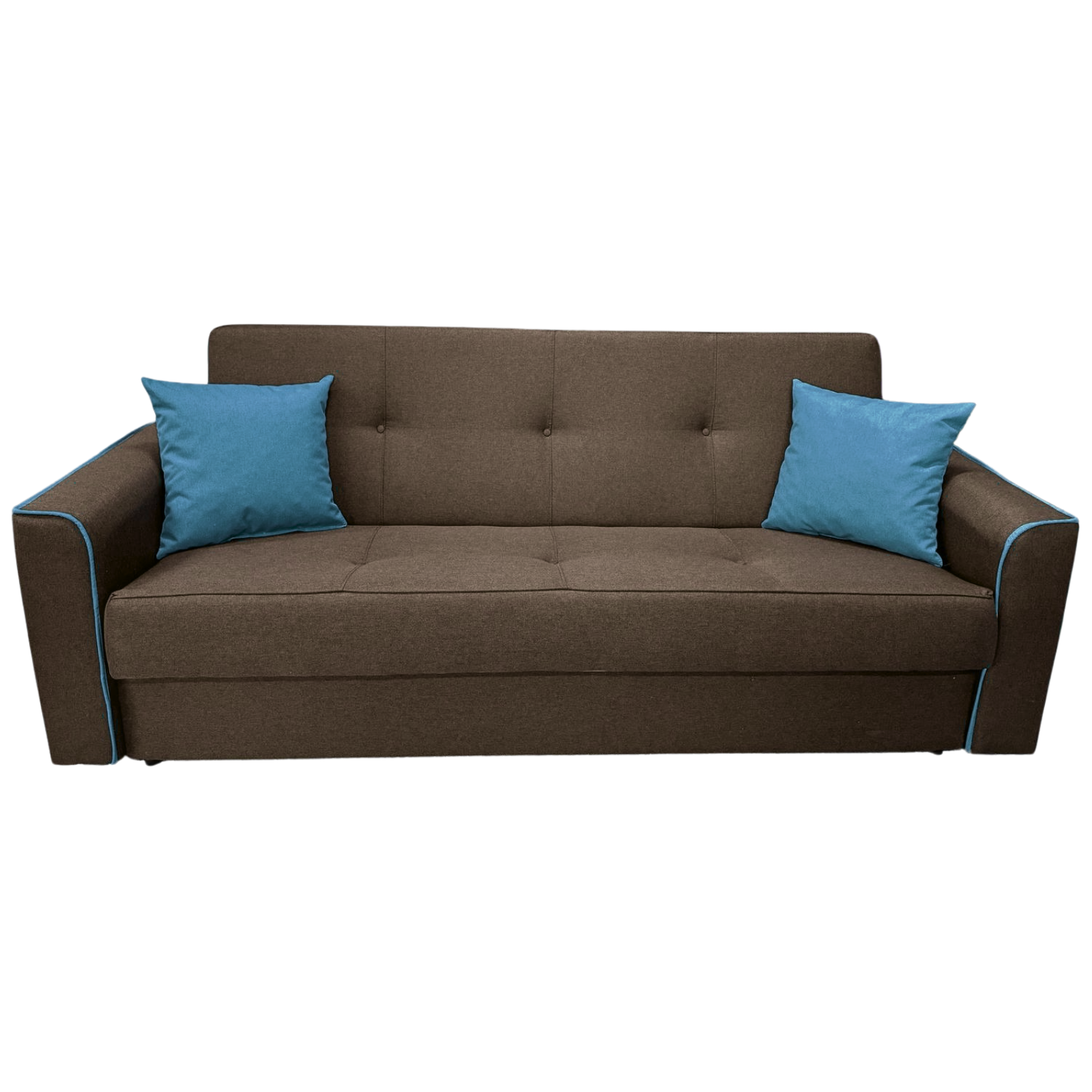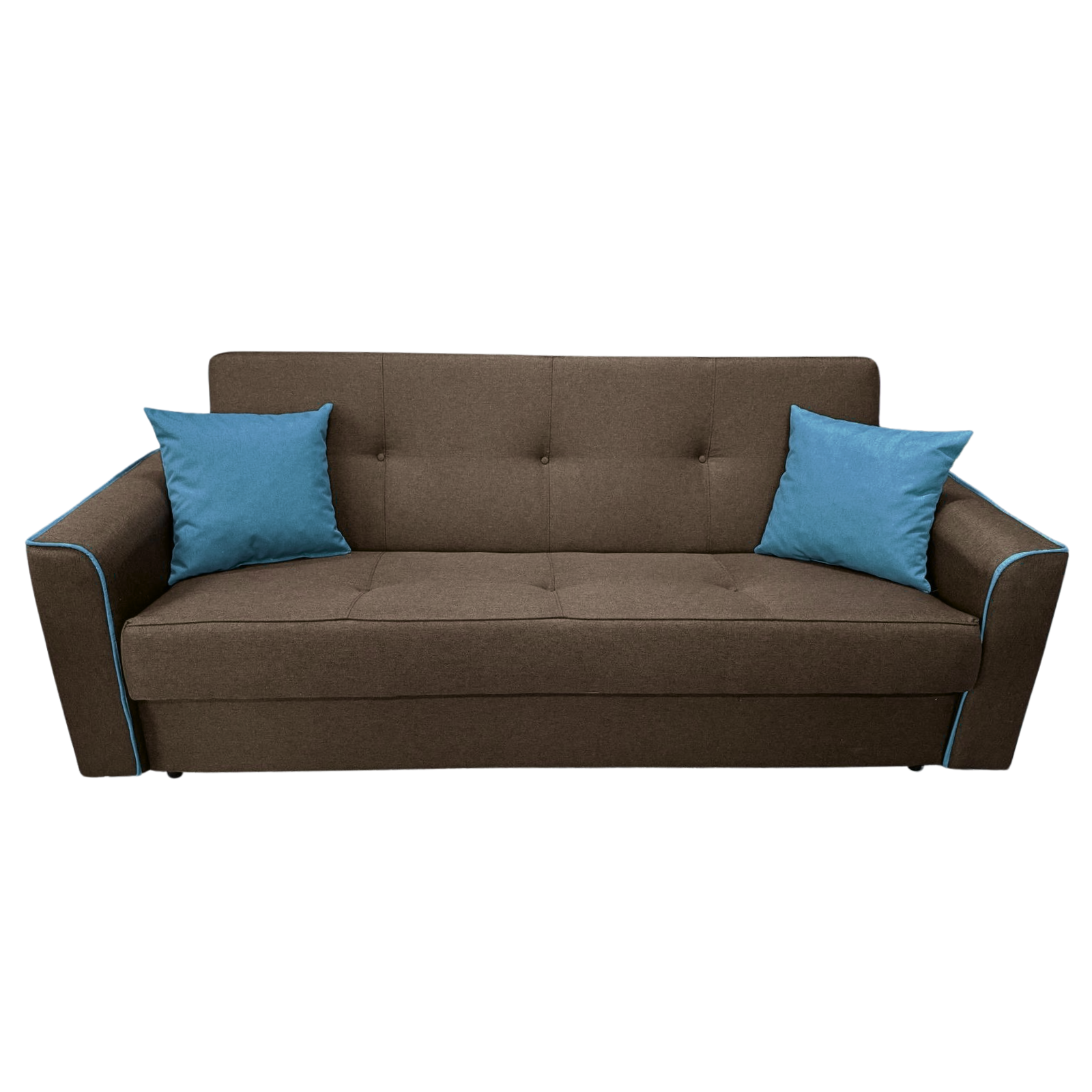 Canapea VERA extensibila, 3 locuri, lada de depozitare, stofa maro + turcoaz, 225x90x90
