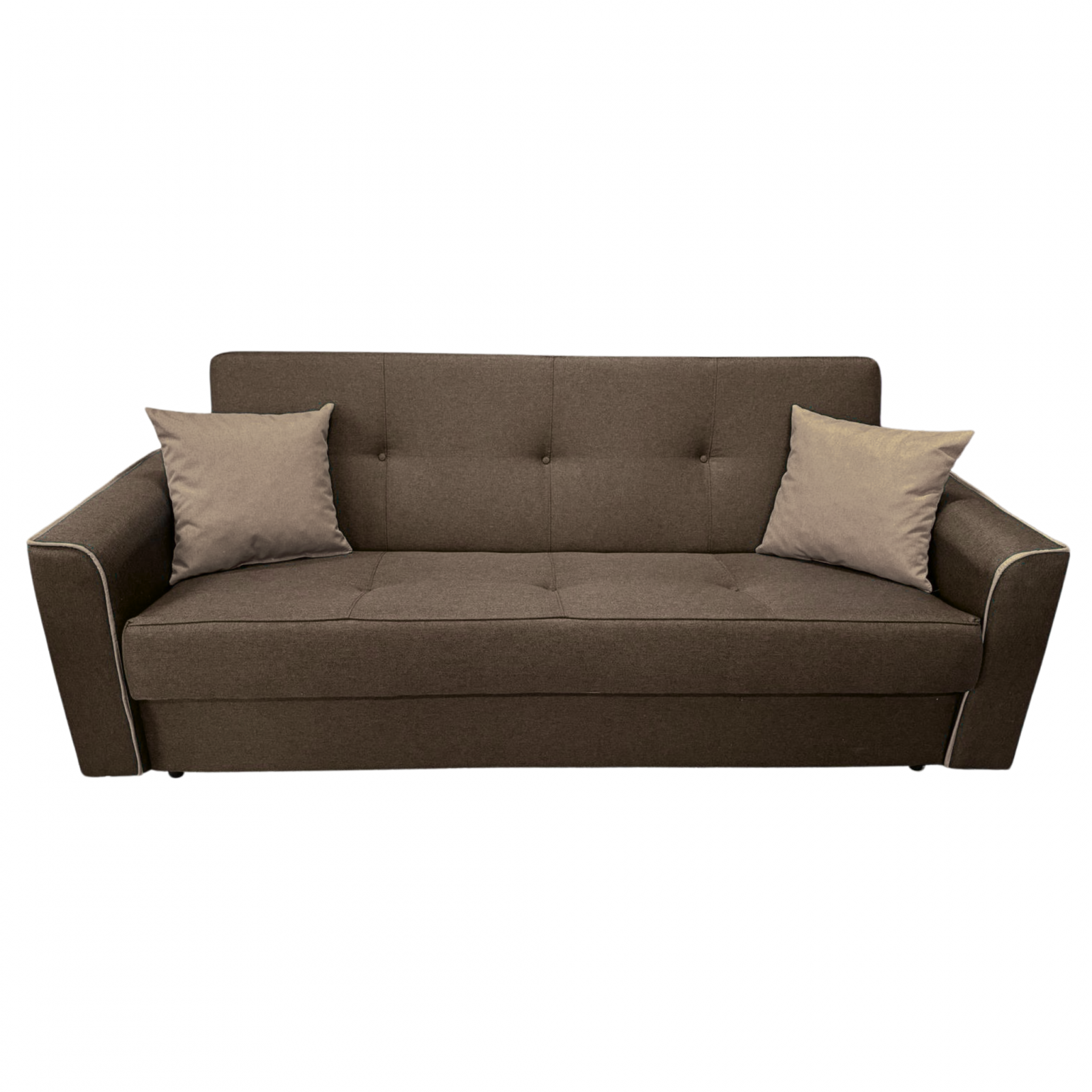 Canapea VERA extensibila, 3 locuri, lada de depozitare, stofa maro + crem, 225x90x90