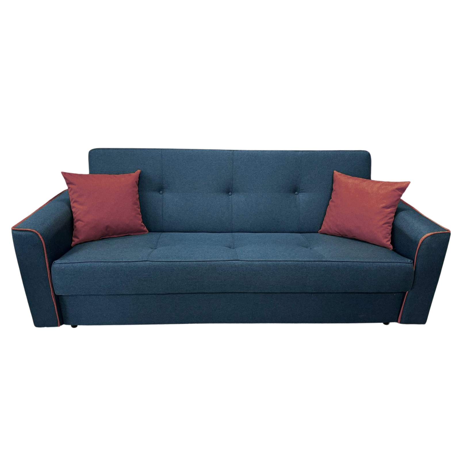 Canapea VERA extensibila, 3 locuri, lada de depozitare, stofa bleumarin + rosu bordo, 225x90x90