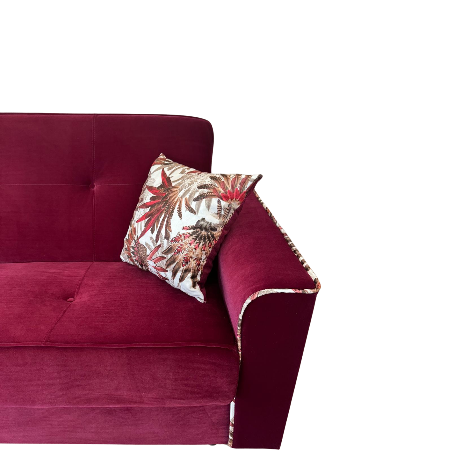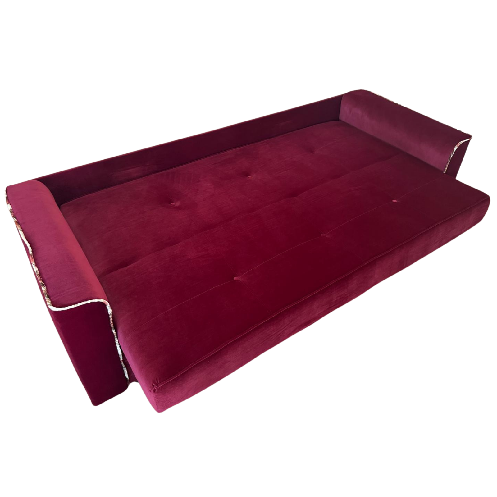Canapea VERA extensibila, 3 locuri, lada de depozitare, catifea rosu bordo, 225x90x90