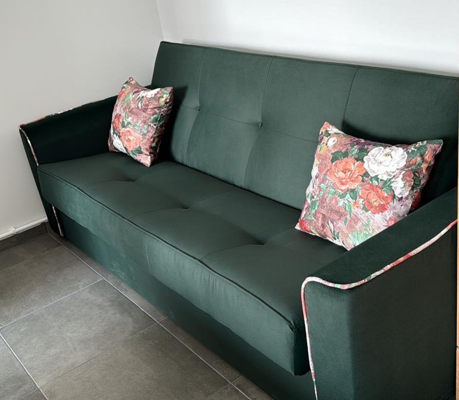 am vrut canapeaua asta pe verde inchis, desi nu era culoarea pe site. Le am scris si au zis ca o pot face pe comanda. A iesit foarte frumoasa, exact cum am vrut. E comoda si pernele se potrivesc perfect. Recomand.