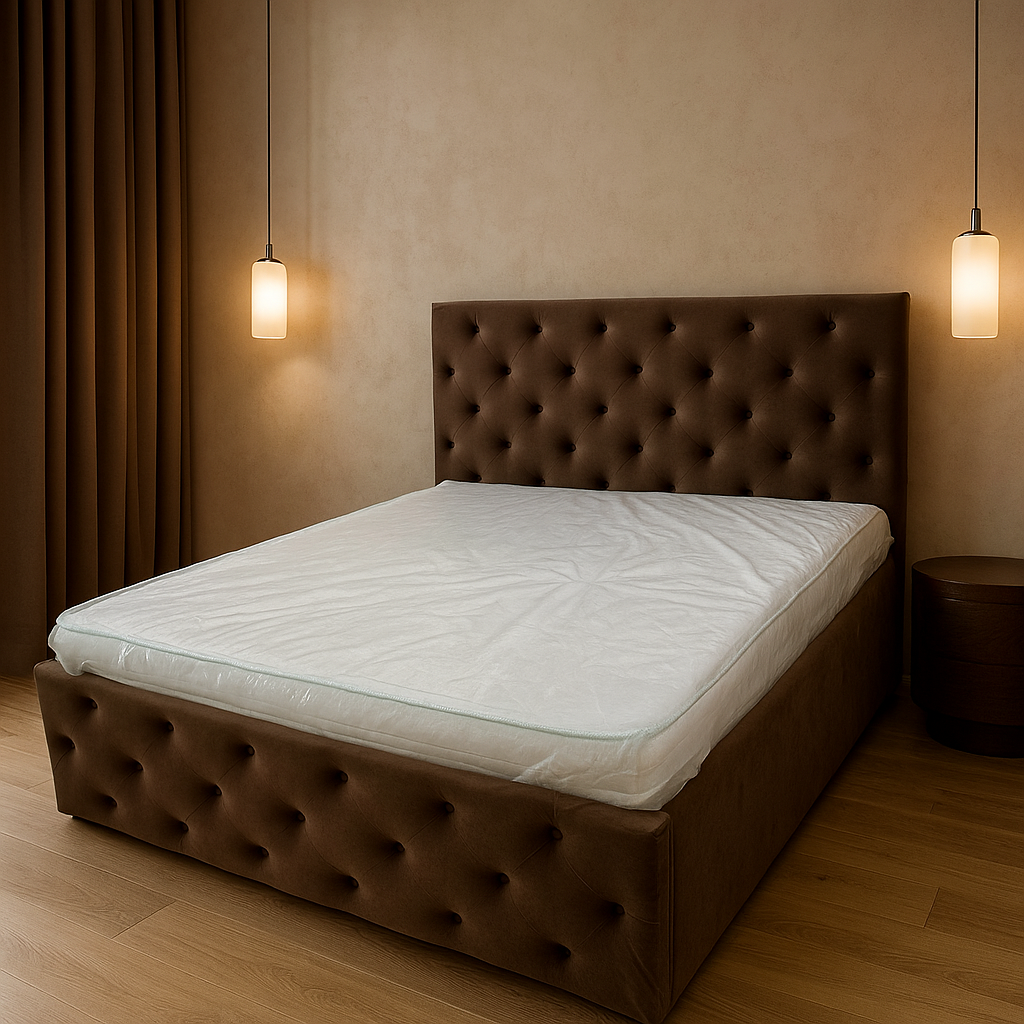 Tapițeria atent finisată și liniile bine definite transformă patul într-o piesă centrală în orice amenajare.